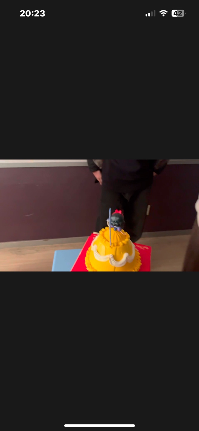 급히 복도로 나갔더니, 뭔가 분주하게 움직이는 기색이 느껴졌다. ‘뭐지?’ 궁금해하며 옆 강의실 문을 열었는데, 노란색 공주 드레스 모양의 케이크가 탁자 위에 놓여 있었고, 주위에는 아이들이 모여 있었다.